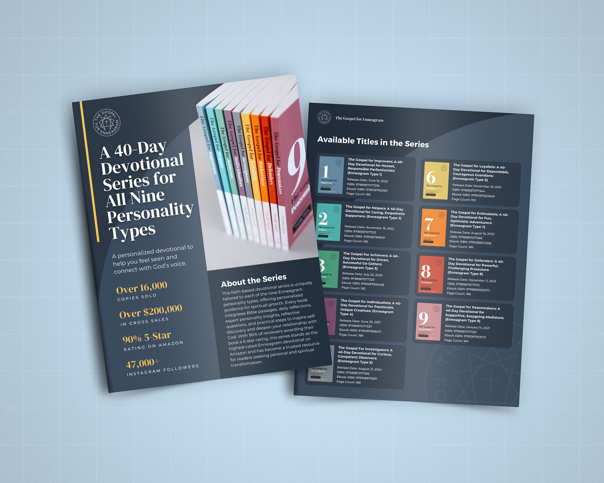 Designed a stunning 5 page sell sheet for a book series in the Spirituality & Self-Help genres for an author pitching his series to Barnes & Noble and other high-profile book retailers.