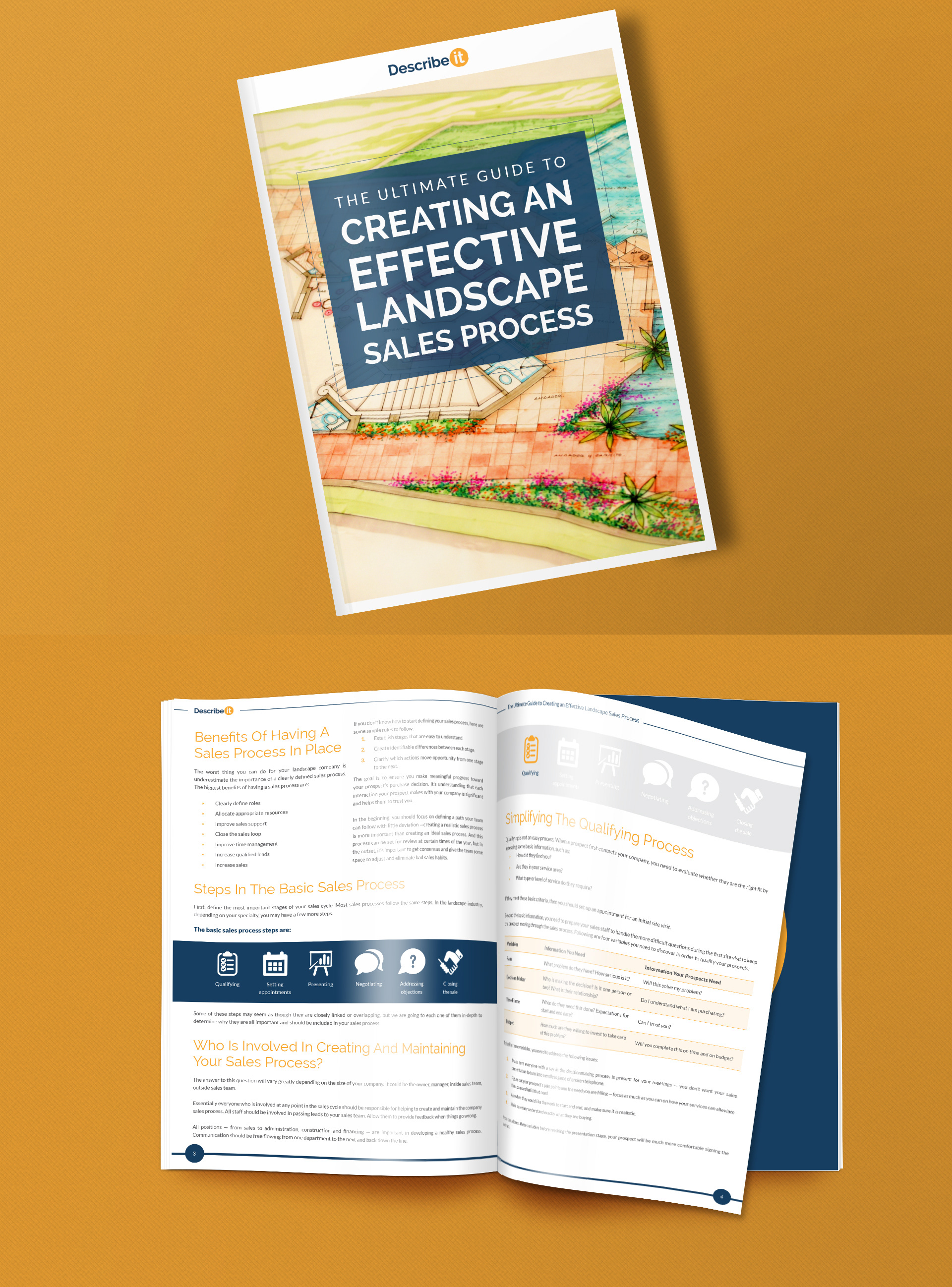 Creations, design, and layout of digital PDF guide for landscape companies.